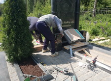 Так выглядит место захоронения после укладки установки памятника и укладки брусчатки